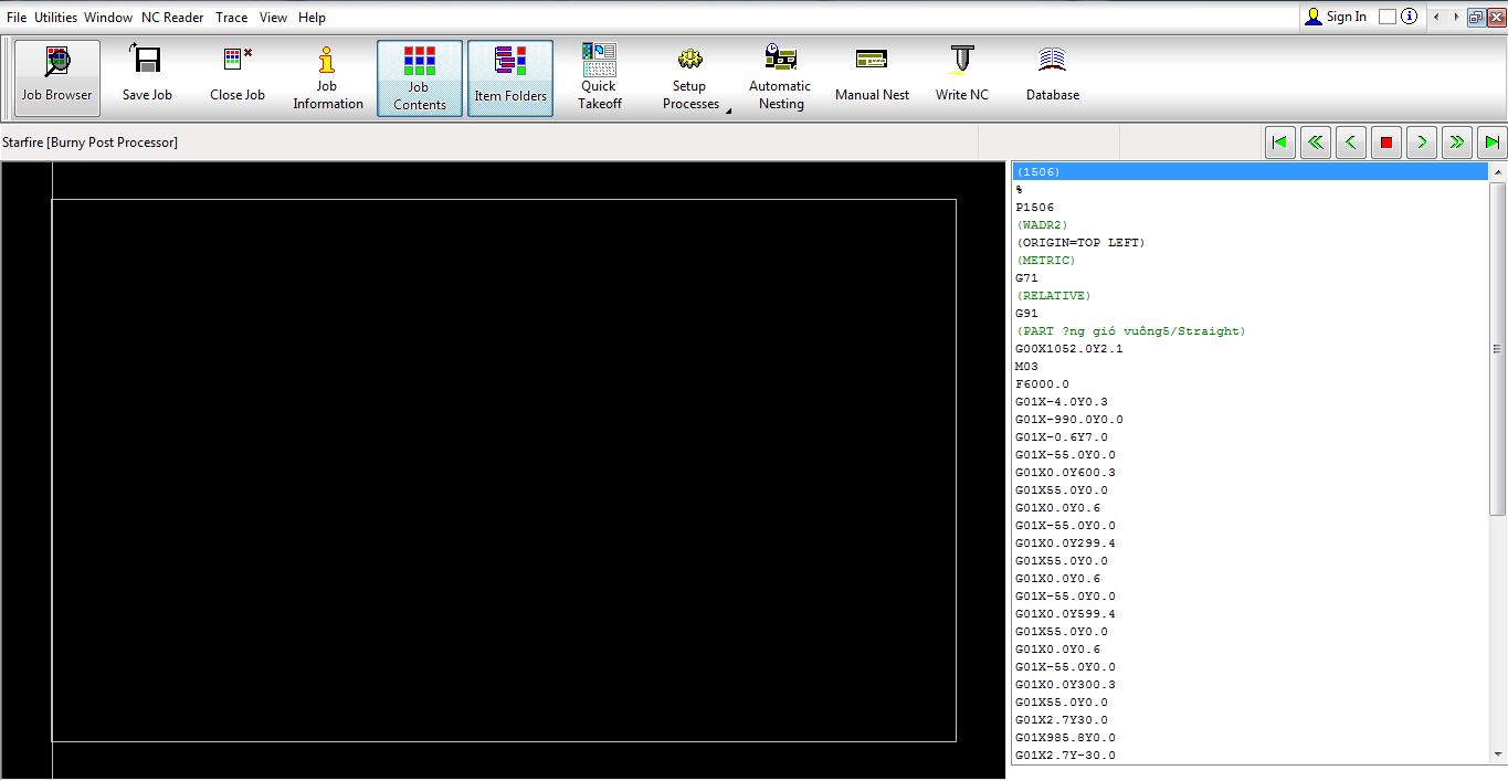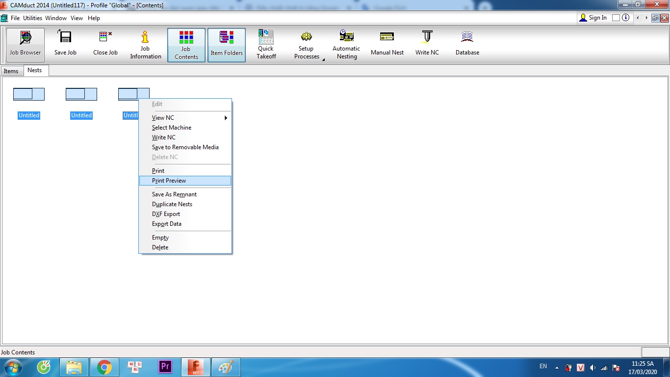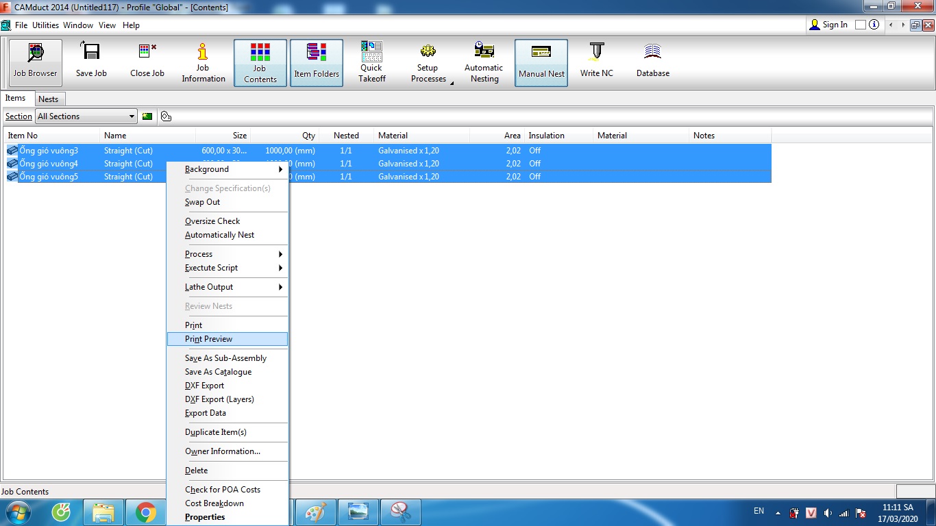 - Xem file bản vẽ trên máy bạn chọn mục Job Contents > Nests > quét chọn các file nhấn chuột phải chọn Print Preview.
