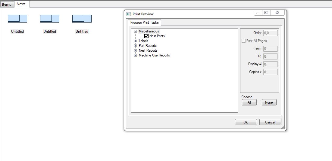 - Click vào Nest Prints tiếp theo nhấn ok.