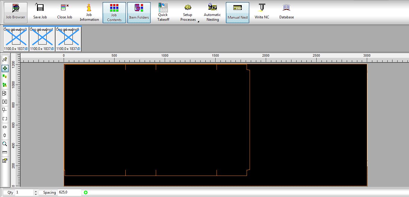 - Ta vào mục Manual Nest để sắp xếp lại file bản vẽ thiết kế, sắp xếp sao cho lợi nhất tránh hao phí vật liệu tiết kiệm là hàng đầu .