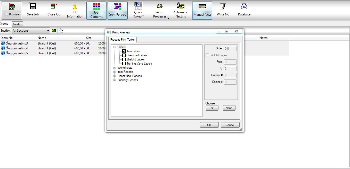 - Hiển thị nhãn cho bản vẽ dễ lắm đặt sau này bạn chọn mục Job Contents > Items > quét chọn các file nhấn chuột phải chọn Print Preview