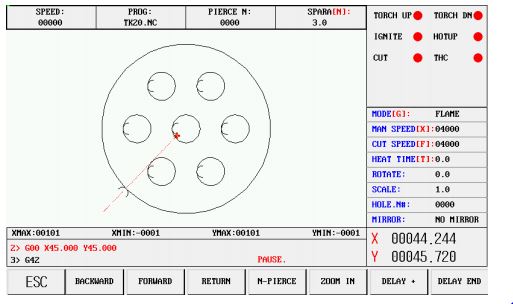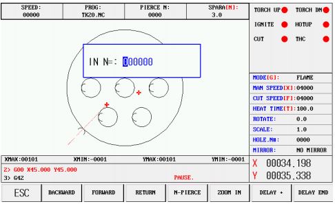 1) Người vận hành có thể nhấn 【↑】 【↓】 【←】 【→】 , Điều chỉnh vị trí của mỏ cắt theo giới hạn bên ngoài