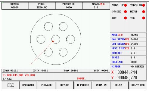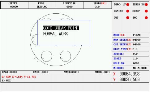 Quay lại điều chỉnh điểm bắt đầu ở tốc độ G00, trong đó chờ các thao tác khác; Điểm này theo điện áp cao tương ứng