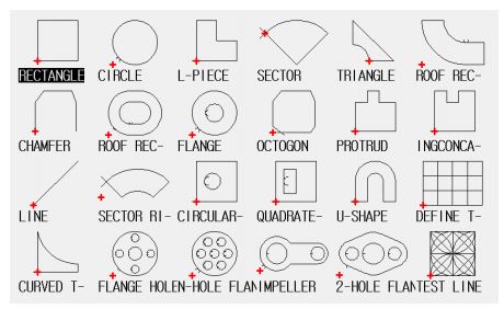 [F1] : Thư viện, enter có thể chọn 24 loại thư viện đồ họa thường được sử dụng, hầu hết đều có kích thước khuôn và kích thước lỗ.