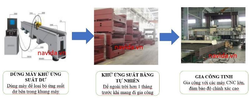 Để đảm bảo khung máy có tính ổn định, chắc chắn và bền, thì khung máy được sản xuất theo quy trình như sau: